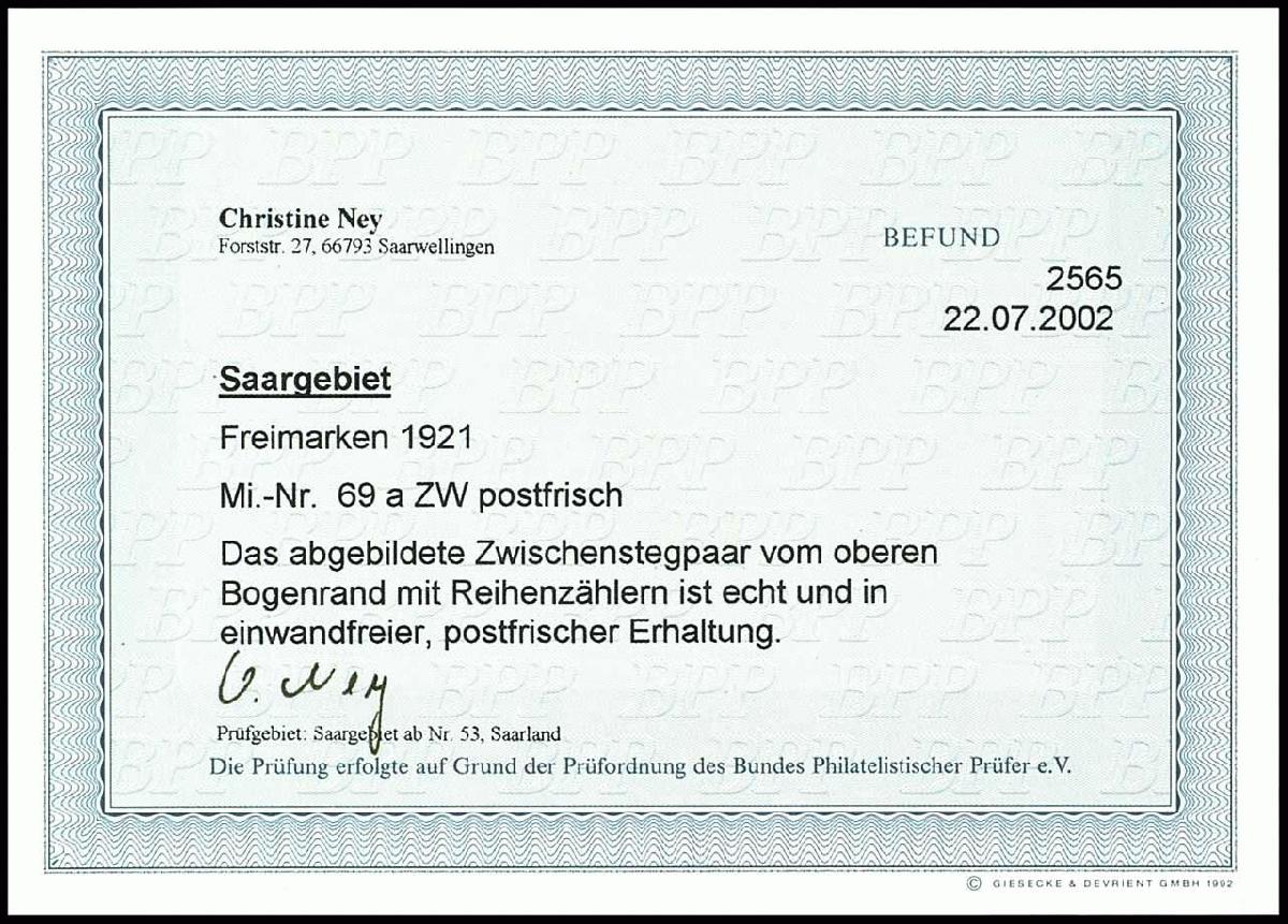 | Prüfer: | Ney, Christine (BPP (Bund Philatelistischer Prüfer)) |