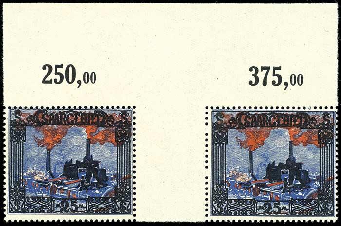 | Zusatzinformationen und Suchstichworte: | Dr. Reinhard Fischer 193. Auktion 21. - 22. Juli 2023 Los 4307 Saar 25 Mk. Landschaftsbilder I, waager. Zwischenstegpaar mit oberen Bogenrand, postfrisch, Fotobefund Ney BPP: "echt und einwandfrei", Mi. 400,- Ausruf 100,00 EUR |