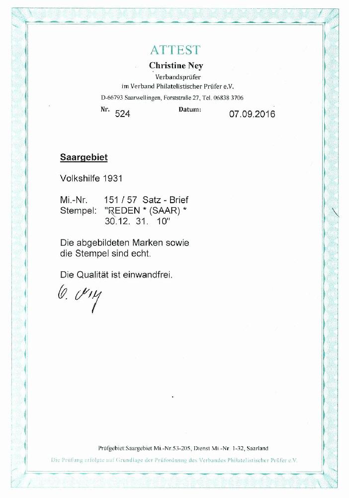| Prüfgebiet: | Saargebiet (Mi-Nr. 1 - 205) |