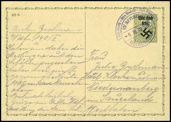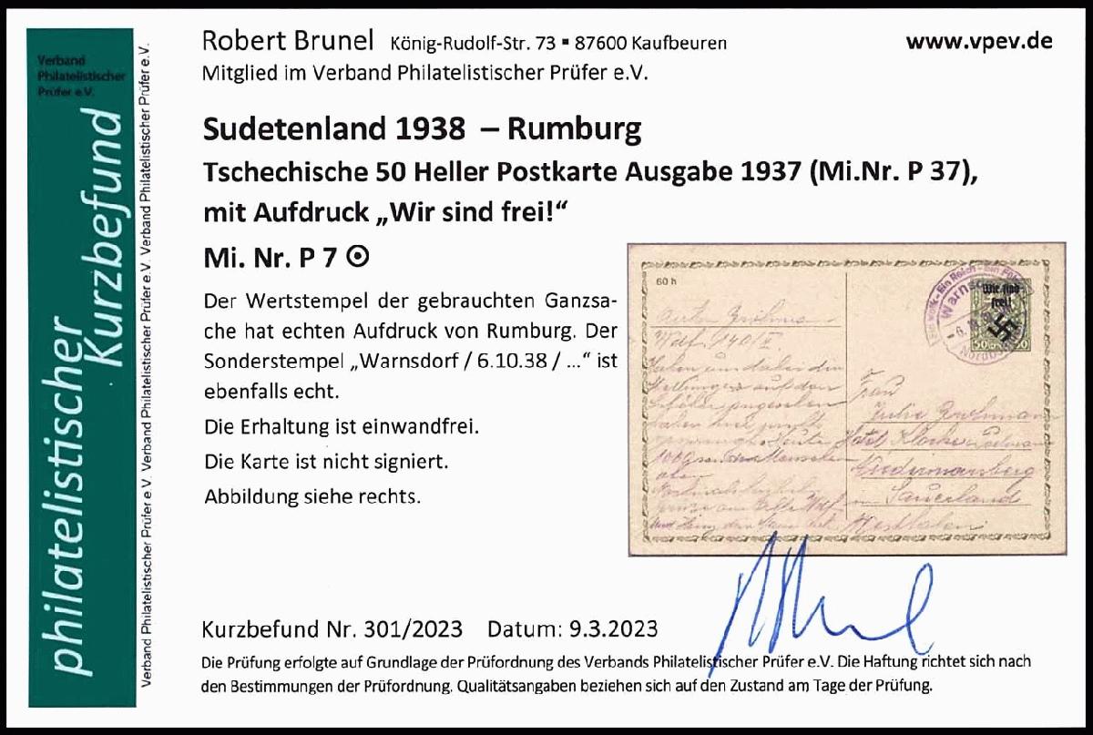 | Zusatzinformationen und Suchstichworte: | Dr. Reinhard Fischer 193. Auktion 21. - 22. Juli 2023 Los 4497 Sudetenland Rumburg 50 Heller Ganzsachenkarte mit Aufdruck "Wir sind frei! + Hakenkreuz", bedarfsgebraucht, Fotobefund Robert Brunel VP (2023): "Die Erhaltung ist einwandfrei." Ausruf 70,00 EUR |