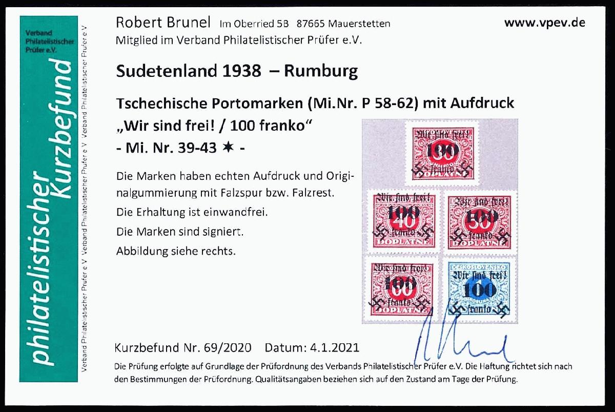 | Zusatzinformationen und Suchstichworte: | Dr. Reinhard Fischer 193. Auktion 21. - 22. Juli 2023 Los 4508 Sudetenland Rumburg 30 H. bis 1 Kc. Portomarken mit Aufdruck "Wir sind frei! + Hakenkreuz", tadellos ungebraucht, Fotobefund Brunel VP (2021): "Die Erhaltung ist einwandfrei.", Mi. 100.- Ausruf 30,00 EUR |