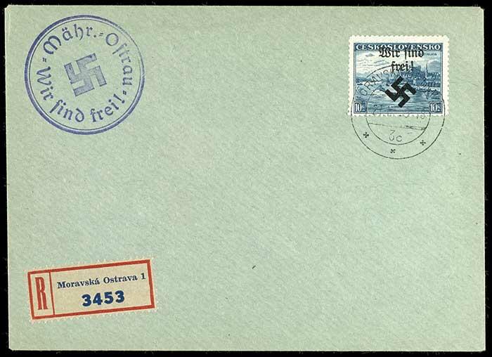| Zusatzinformationen und Suchstichworte: | Dr. Reinhard Fischer 193. Auktion 21. - 22. Juli 2023 Los 4534 Böhmen und Mähren Mährisch-Ostrau 10 Kc. mit Aufdruck "Wir sind frei! + Hakenkreuz"; entwertet "Moravska Ostrava 4 *** 21.III.39" auf Umschlag mit Propaganda-Nebenstempel, Fotobefund Robert Brunel VP (2023): "Die Erhaltung ist einwandfrei." Ausruf 200,00 EUR |