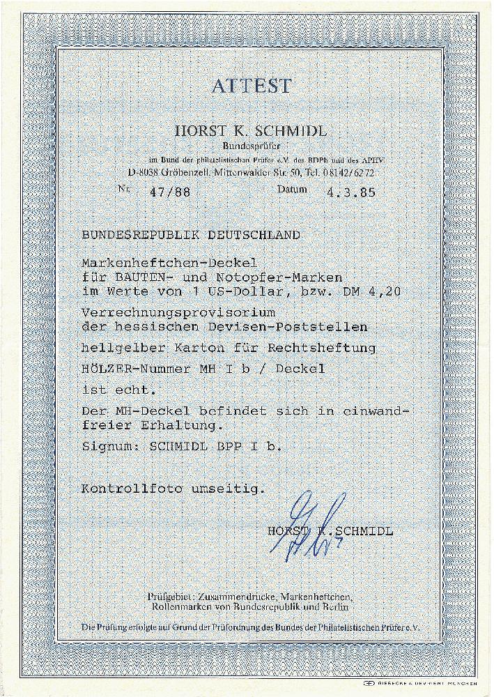 | KatalogNr: | Michel Hölzer MH I b Deckel |