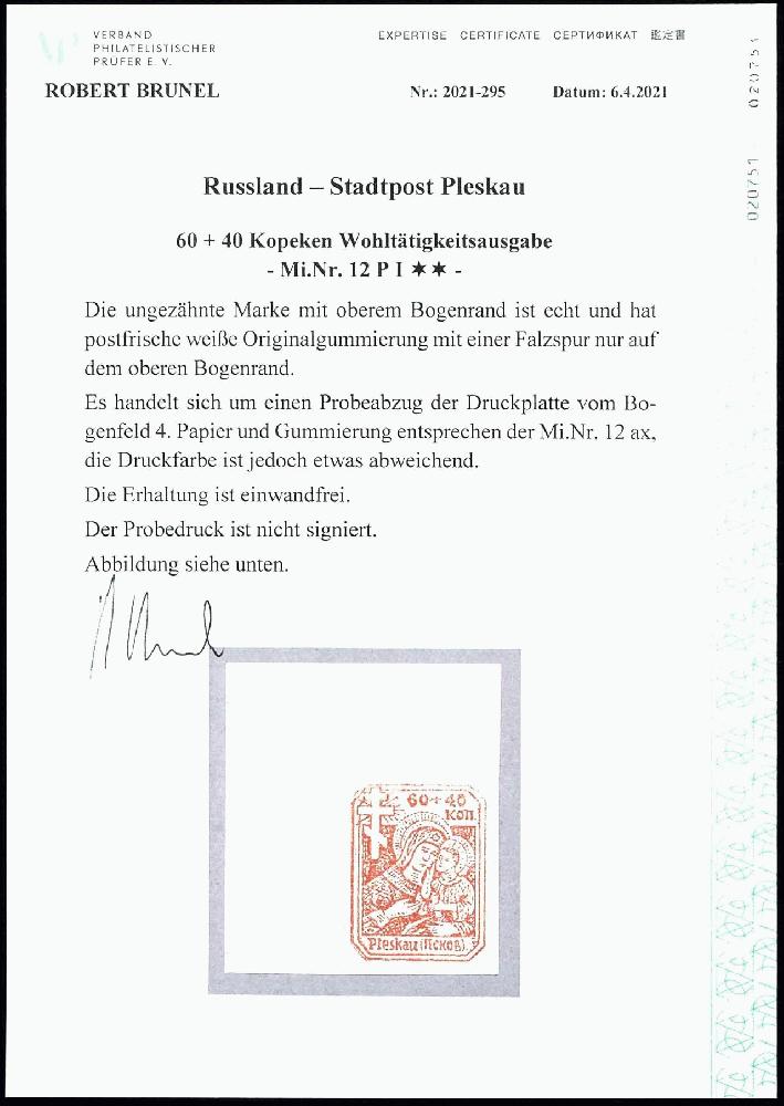| Zusatzinformationen und Suchstichworte: | Dr. Reinhard Fischer 193. Auktion 21. - 22. Juli 2023 Los 4790 Deutsche Besetzung II. WK Russland - Pleskau 60 Kop. Wohltätigkeitsausgabe, ungezähnter Probedruck vom Eckrand oben links (dort Falzspur), Marke tadellos postfrisch, selten, Expertise Brunel VP (2021): "Die Erhaltung ist einwandfrei.", Mi. 800.- Ausruf 300,00 EUR |