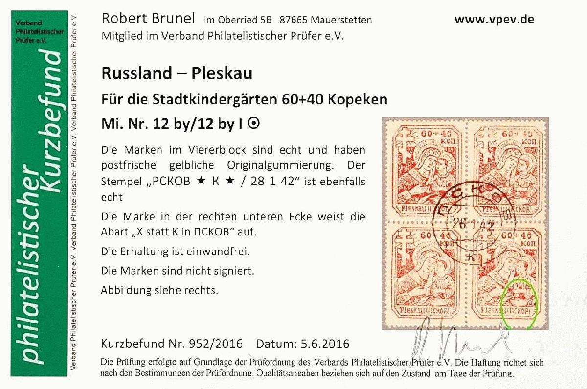 | Zusatzinformationen und Suchstichworte: | Dr. Reinhard Fischer 193. Auktion 21. - 22. Juli 2023 Los 4791 Deutsche Besetzung II. WK Russland - Pleskau 60 + 40 Kop. Stadtkindergärten, rotbraun, weißes Papier mit gelblicher Gummierung, Plattenfehler I "X statt K in NCKOB" innerhalb eines Viererblocks, tadellos gestempelt, Fotobefund Robert Brunel VP (2016): "Die Erhaltung ist einwandfrei.", Mi. 460.- Ausruf 110,00 EUR |