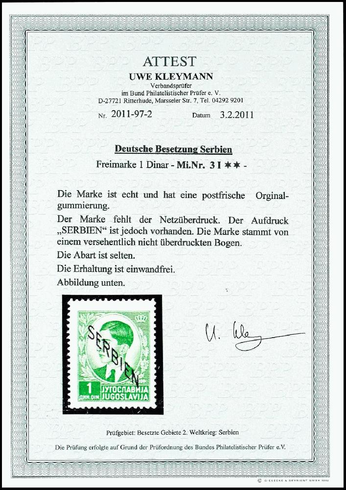 | Prüfgebiet: | Deutsche Besetzung WK 2 Serbien |