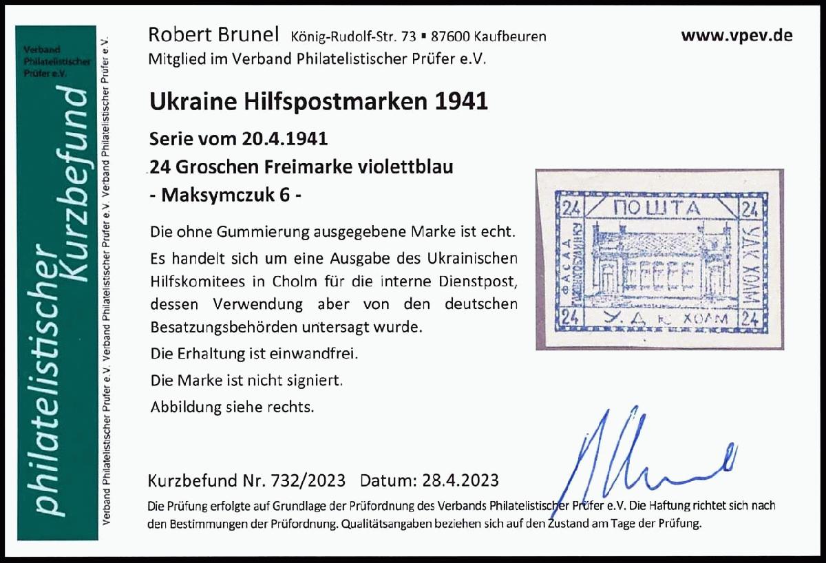 | Prüfgebiet: | Deutsche Besetzung WK 2 Ukraine Hilfspostmarken 1941 |