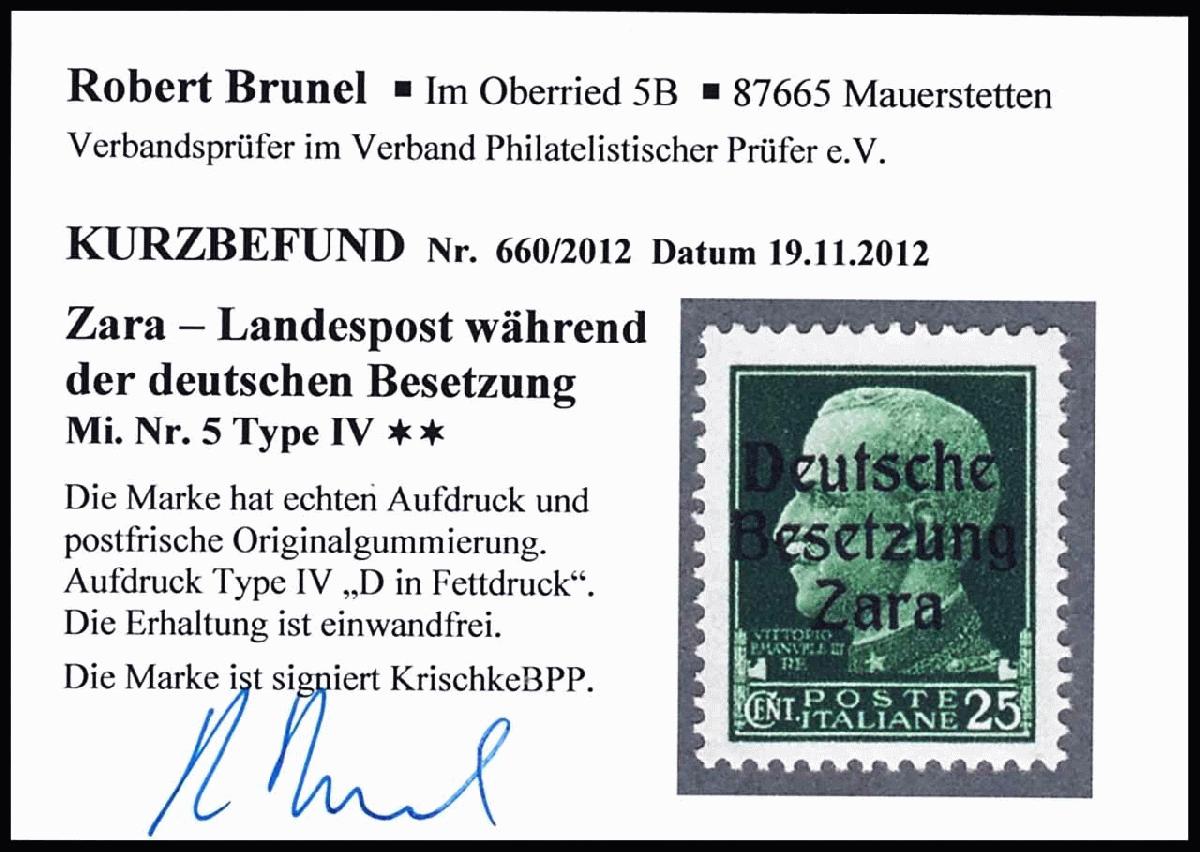 | Prüfgebiet: | Deutsche Besetzung WK 2 Zara |