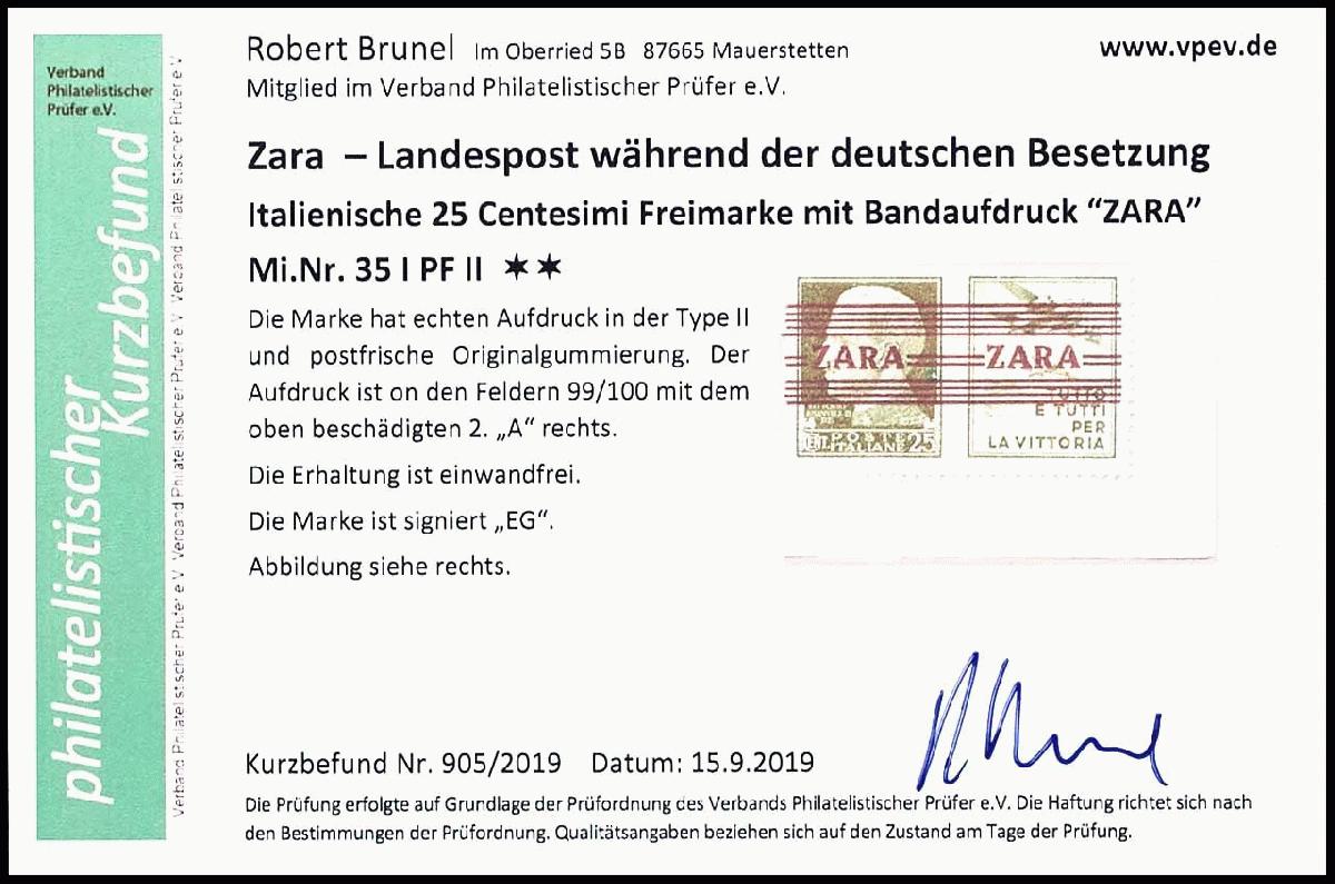 | Prüfgebiet: | Deutsche Besetzung WK 2 Zara |
