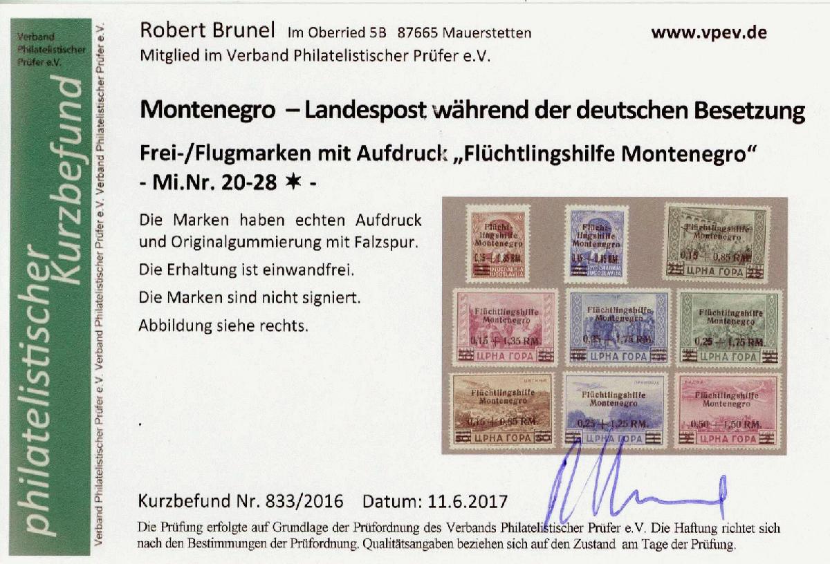 | Zusatzinformationen und Suchstichworte: | Veuskens 121. Auktion 10. - 11. August 2023 Los 1621 Deutsche Besetzung II. WK Montenegro Frei- und Flugpostmarken Dezember 1943, die neun Werte sehr sauber ungebraucht, mit Kurzbefund Brunel, Luxus. M€ 270,-- Ausruf 80,00 EUR |