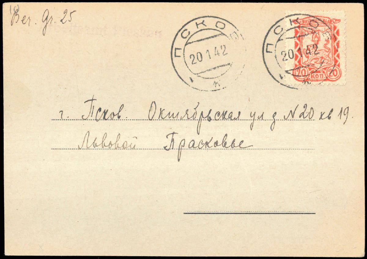 | Prüfgebiet: | Deutsche Besetzung WK 2 Russland Pleskau |