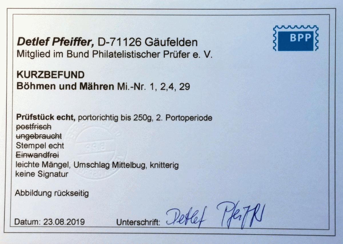 | Prüfer: | Pfeiffer, Detlef (BPP (Bund Philatelistischer Prüfer)) |