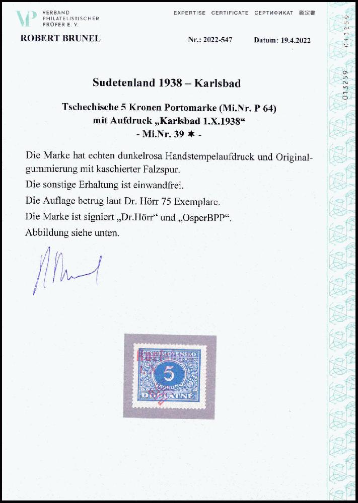 | Zusatzinformationen und Suchstichworte: | Württembergisches Auktionshaus 142. Versteigerung 23.-24. Juni 2023 Los 8089 Sudetenland Karlsbad 5 Kc., tadellos ungebraucht, Auflage nur 75 Exemplare, Katalogpreis: 800,- Zuschlag 270,00 EUR |