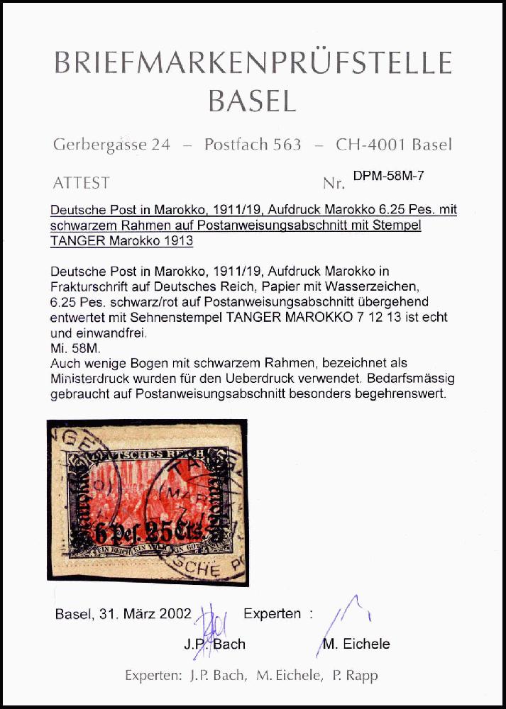 | Prüfgebiet: | Deutsche Auslandspostämter Marokko |