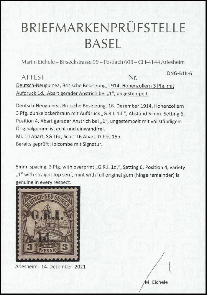 | Prüfgebiet: | Deutsche Kolonien Deutsch-Neuguinea Britische Besetzung |