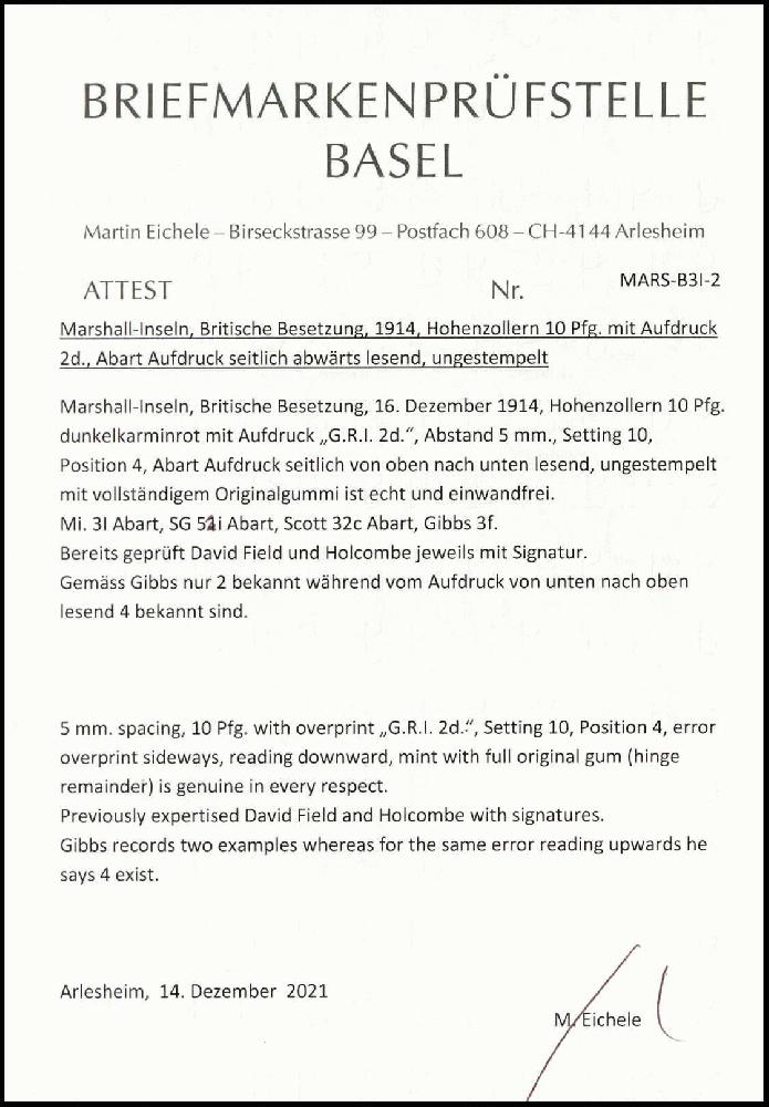 | Prüfgebiet: | Deutsche Kolonien Marshall-Inseln Britische Besetzung |