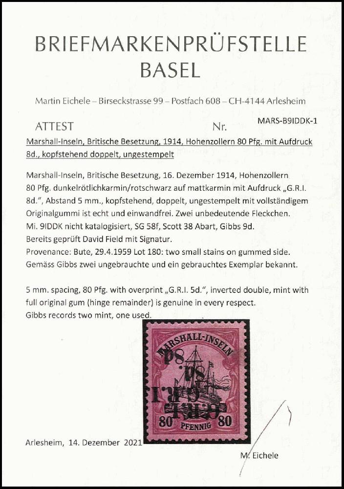 | Prüfgebiet: | Deutsche Kolonien Marshall-Inseln Britische Besetzung |