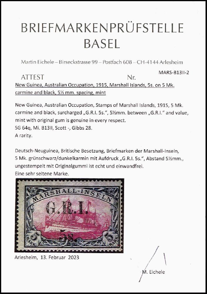 | Prüfgebiet: | Deutsche Kolonien Marshall-Inseln Britische Besetzung |