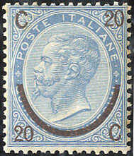 | Zusatzinformationen und Suchstichworte: | Götz 402. Auktion 19. - 23. Juni 2023 Los 2563 Italien 20 a. 15 C. blau, ungebraucht mit grossen Teilen des Originalgummis in seltener Type III, etwas Alterspatina. Farbfotoattest Eichele. Mi. 550,- € Ausruf 60,00 EUR |