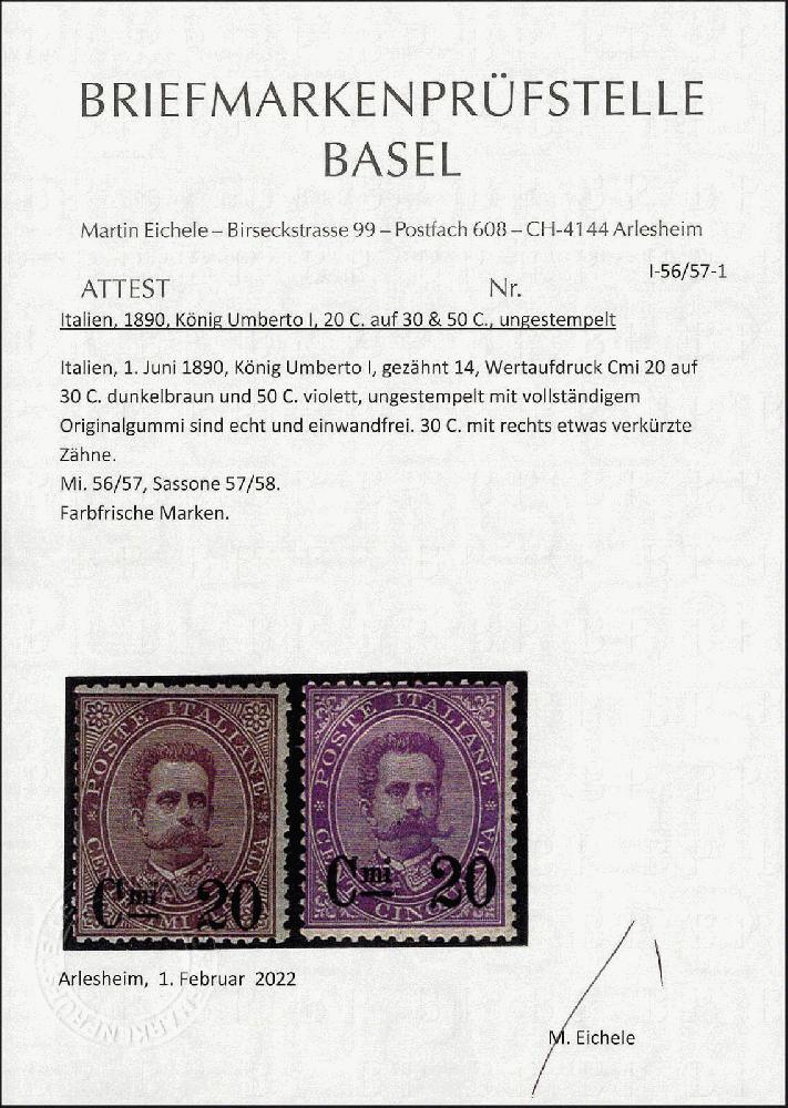 | Zusatzinformationen und Suchstichworte: | Götz 402. Auktion 19. - 23. Juni 2023 Los 2573 Italien Aufdruck 1890, beide Werte ungebraucht mit Originalgummierung u. bis auf leicht verkürzte Zähnung bei Wert zu 30 C. in sehr farbfrischer Erhaltung. Farbfotoattest Eichele. Mi. 750,- € Ausruf 80,00 EUR |
