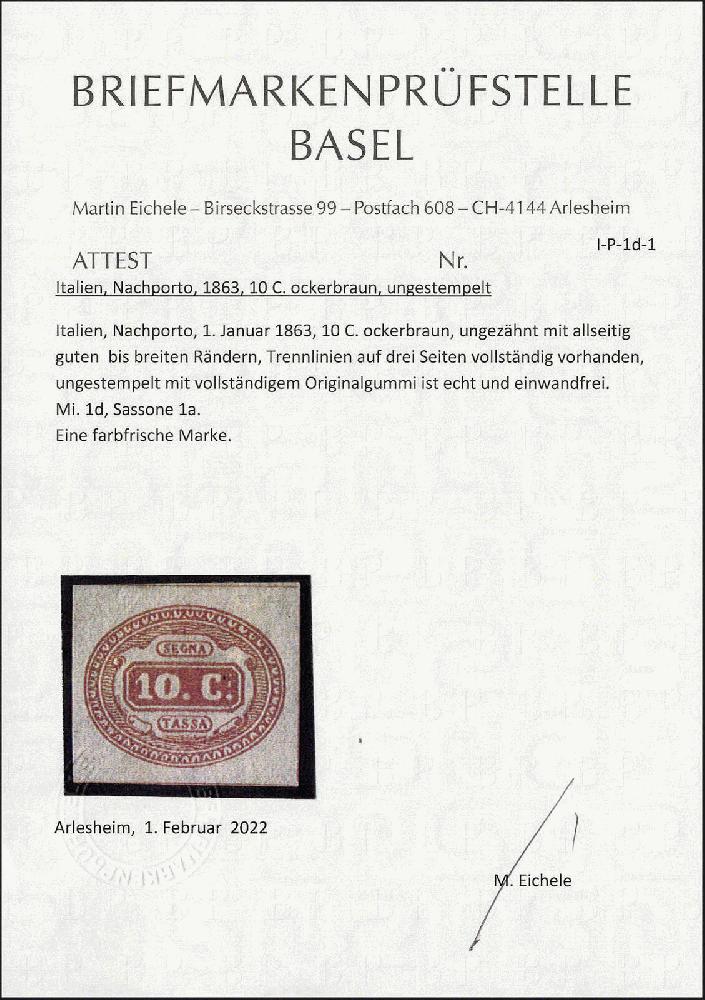 | Prüfgebiet: | Italien 1861 - aktuell Portomarken |