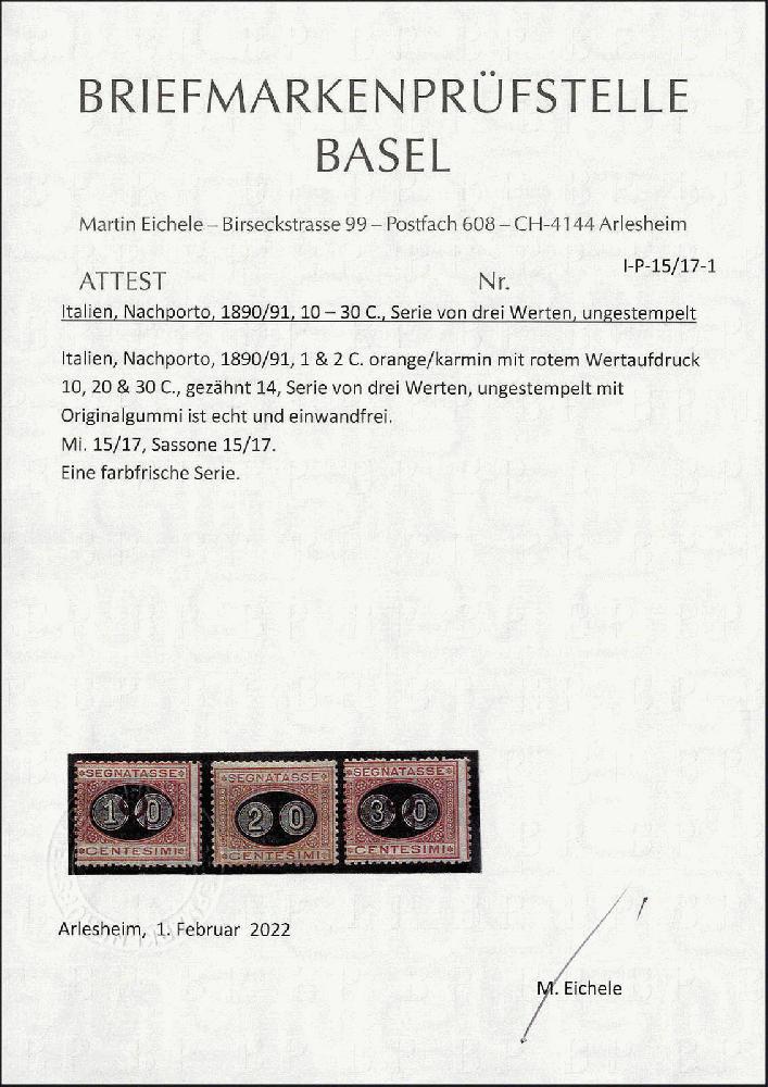 | Prüfgebiet: | Italien 1861 - aktuell Portomarken |