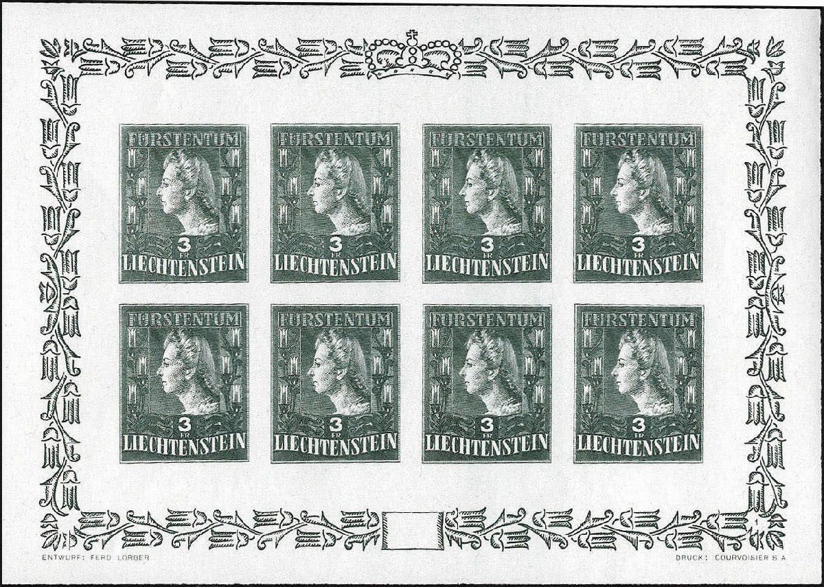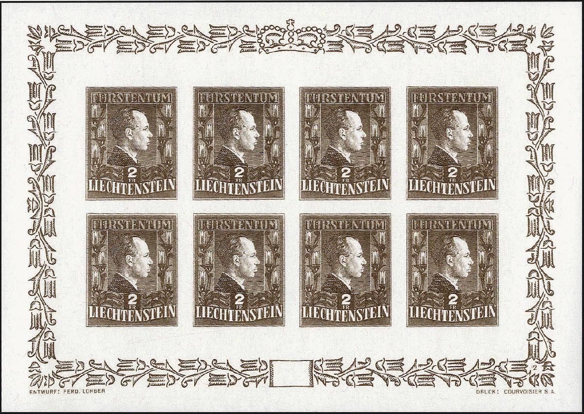 | Zusatzinformationen und Suchstichworte: | Götz 402. Auktion 19. - 23. Juni 2023 Los 2674 Liechtenstein Fürstenpaar 1944 als seltene ungezähnte Phasendruck-Kleinbogen in den Farben "Blassbraun" u. "Blassgrün", ungezähnt, tadellos **. Gemäss Farbfotoattest Eichele ein seltenes Paar Ausruf 2.000,00 EUR |