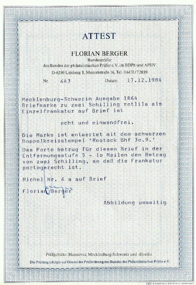 | Zusatzinformationen und Suchstichworte: | 32. Schlegel Auktionshaus Auktion 15. - 19. Mai 2023 Los 5195 Altdeutschland Mecklenburg Schwerin 1864, 2 S. Wappen rotlila, Einzelfrankatur auf Brief ab "ROSTOCK BAHNHOF 30.9.", einwandfrei, signiert, Fotoattest Berger BPP (ME 1.500,-) Zuschlag 450,00 EUR |
