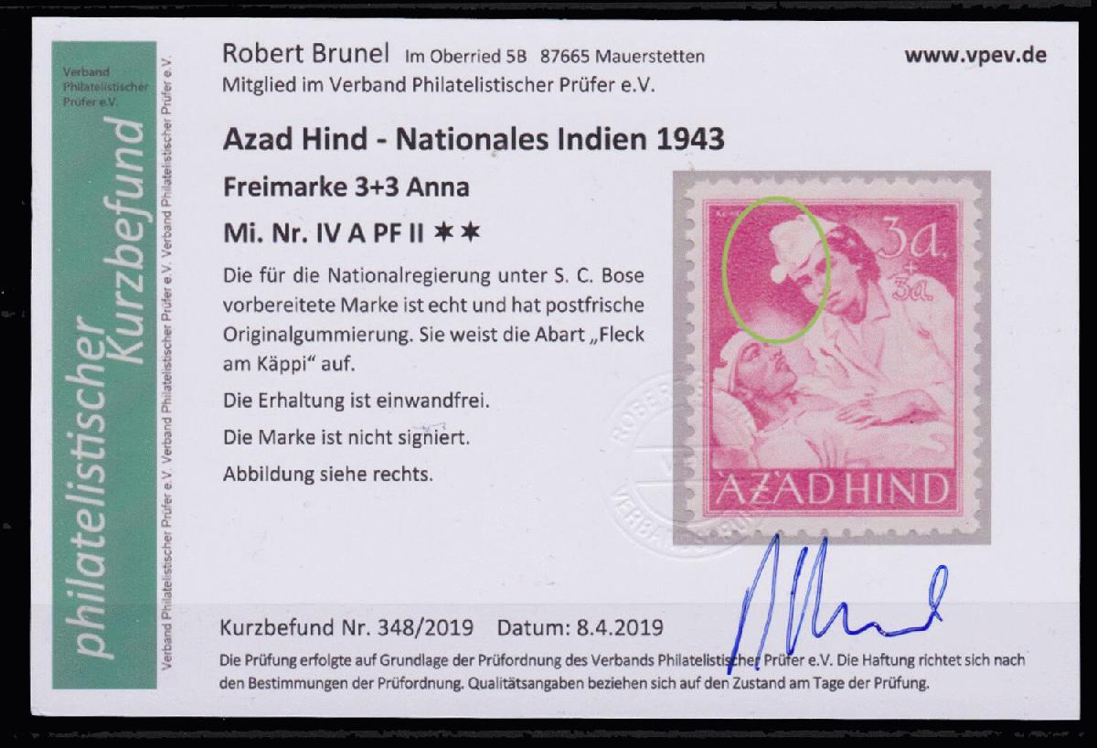 | Zusatzinformationen und Suchstichworte: | Stampbay 9. Auktion 3. Juni 2023 Los 353 Deutsche Besetzung II. WK Nationales Indien Indien 1943, Azad Hind "frei Indien" 3a + 3a, konstante Sorte: weiß Klümpchen unten Hut, occuring einmal im Bogen, ungezähnt, postfrisch, Pracht, hergestellt von die Inder überregionaler Armeen für die post-liberation von Indien aber nicht verausgabt - 2019 Brunel Attest Ausruf 150,00 USD |