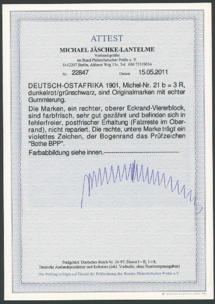| Prüfer: | Jäschke-Lantelme, Michael (BPP (Bund Philatelistischer Prüfer)) |