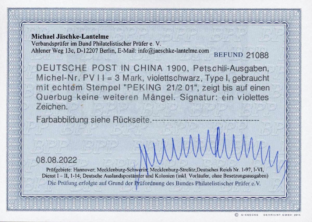 | Prüfgebiet: | Deutsche Auslandspostämter China Petschili-Ausgaben |