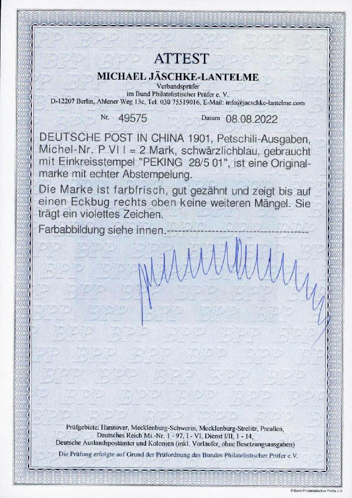 | Prüfgebiet: | Deutsche Auslandspostämter China Petschili-Ausgaben |