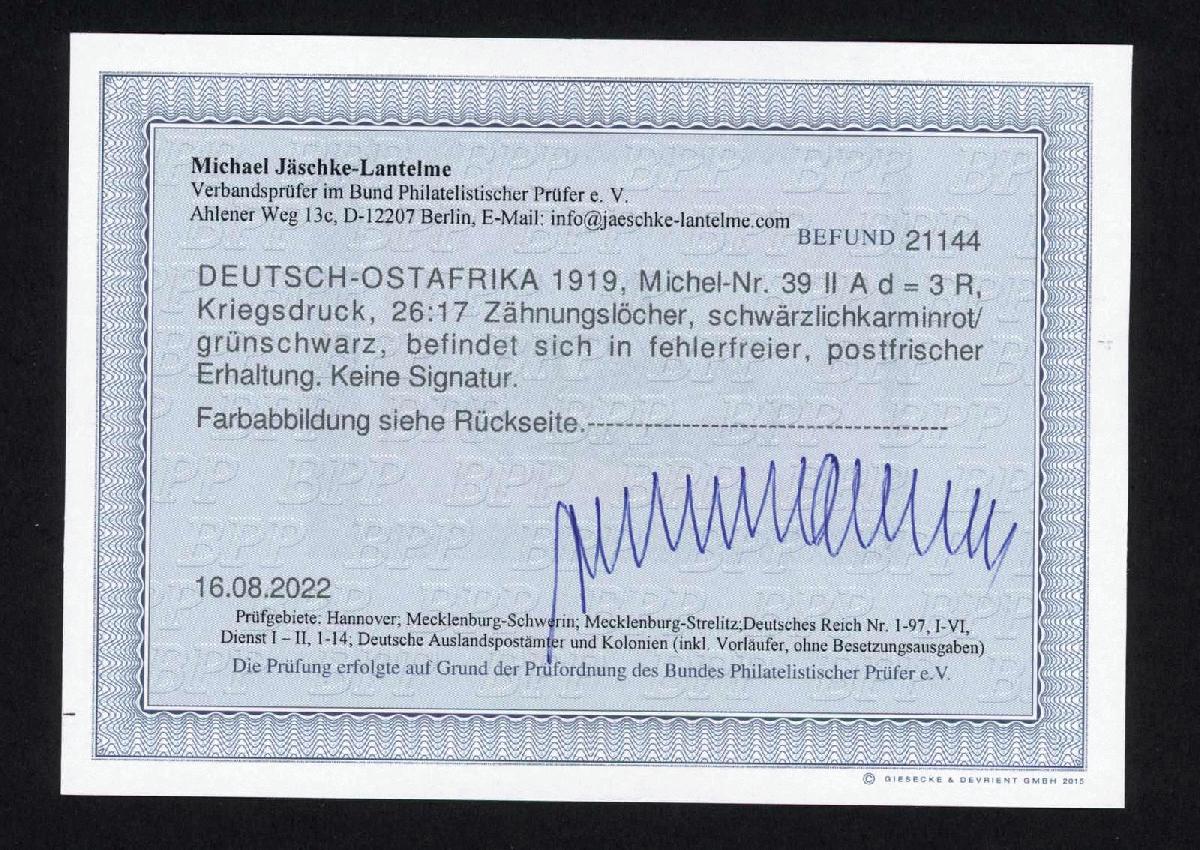 | Prüfer: | Jäschke-Lantelme, Michael (BPP (Bund Philatelistischer Prüfer)) |