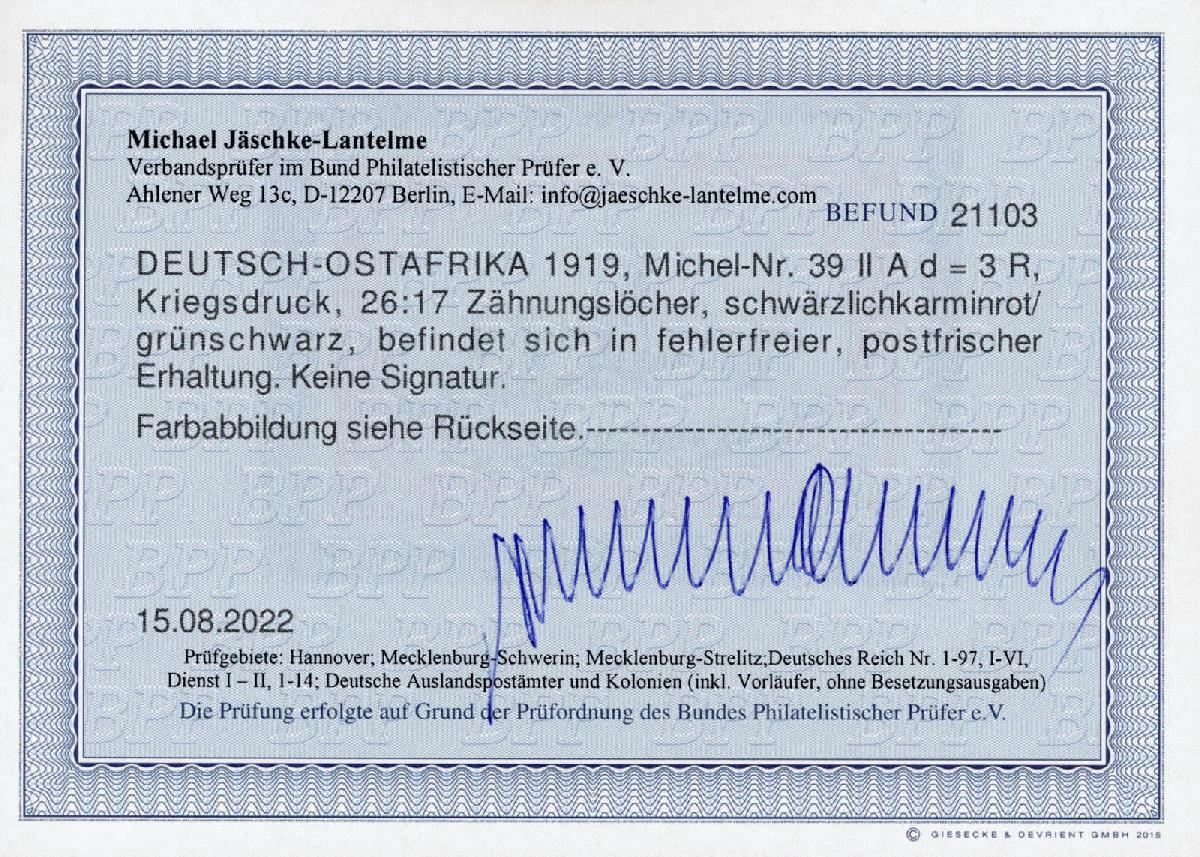 | Prüfer: | Jäschke-Lantelme, Michael (BPP (Bund Philatelistischer Prüfer)) |