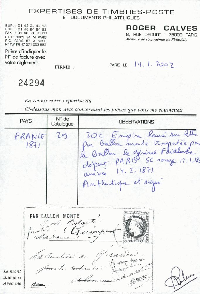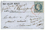 | Zusatzinformationen und Suchstichworte: | Lugdunum 125. Auktion 18. September 2023 Los 504 Frankreich Empire Laure BALLON MONTE : 20c (n°29) obl. PARIS SC 12 Janv 71 en Rouge sur lettre (3 pages) pour ALENCON, réexpédié à RENNES (11 fevr 71) puis QUIMPER (12 Fevr 71). Certificat CALVES. Superbe Ausruf 200,00 EUR |