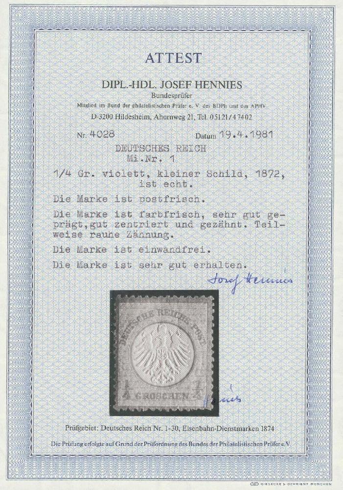 | Prüfgebiet: | Deutsches Reich 1871 - 1918 (Mi-Nr. 1 - 106) |