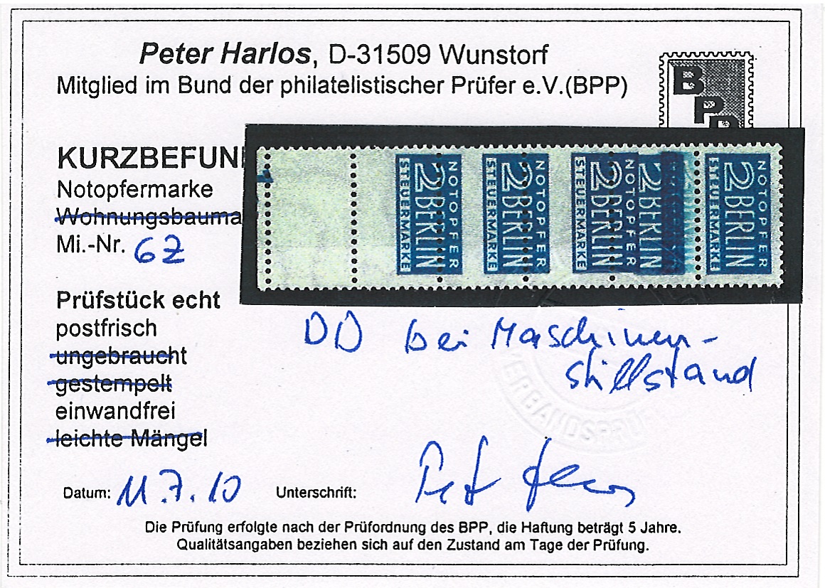 | Prüfgebiet: | Alliierte Besetzung Notopfer- und Wohnungsbaumarken |