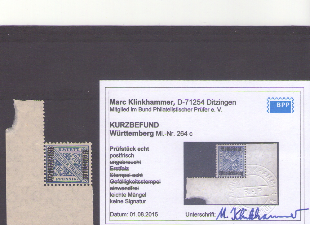 | Prüfer: | Klinkhammer, Marc (BPP (Bund Philatelistischer Prüfer)) |