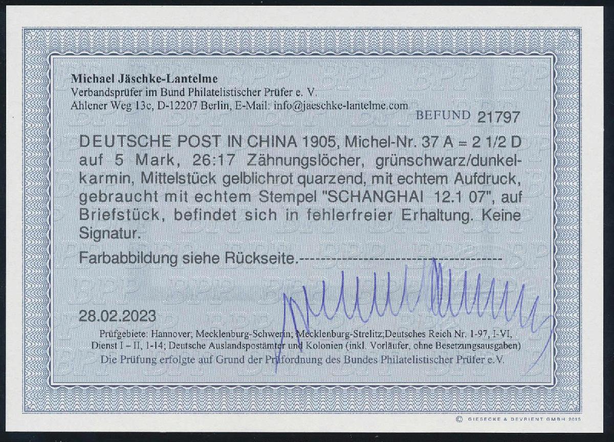 | Prüfgebiet: | Deutsche Auslandspostämter China |