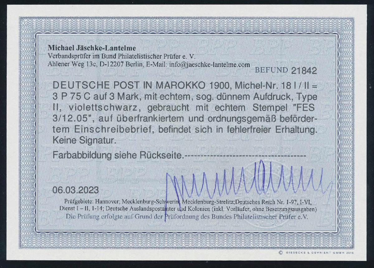 | Prüfgebiet: | Deutsche Auslandspostämter Marokko |
