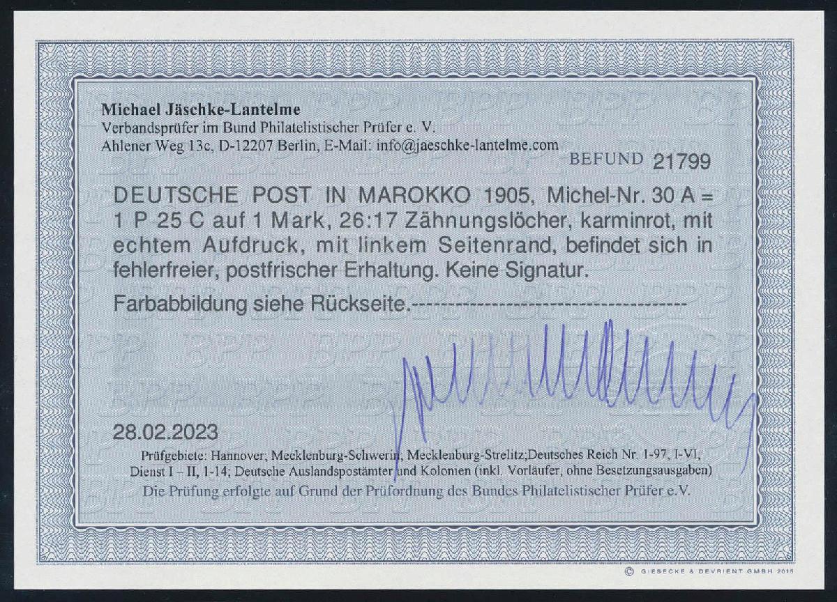 | Prüfgebiet: | Deutsche Auslandspostämter Marokko |