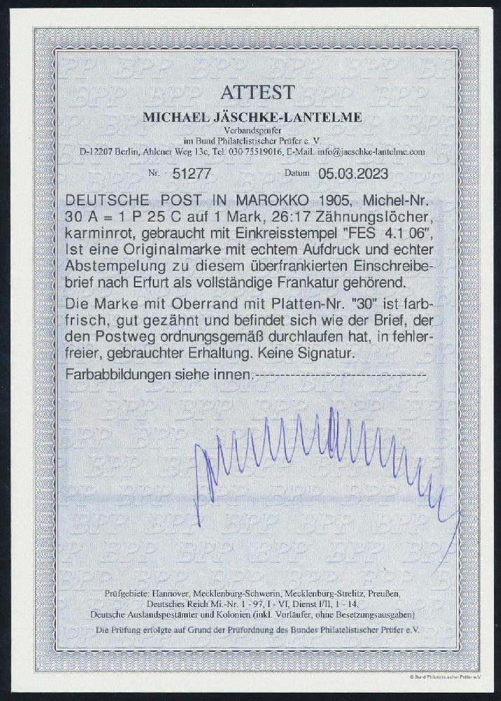| Prüfgebiet: | Deutsche Auslandspostämter Marokko |