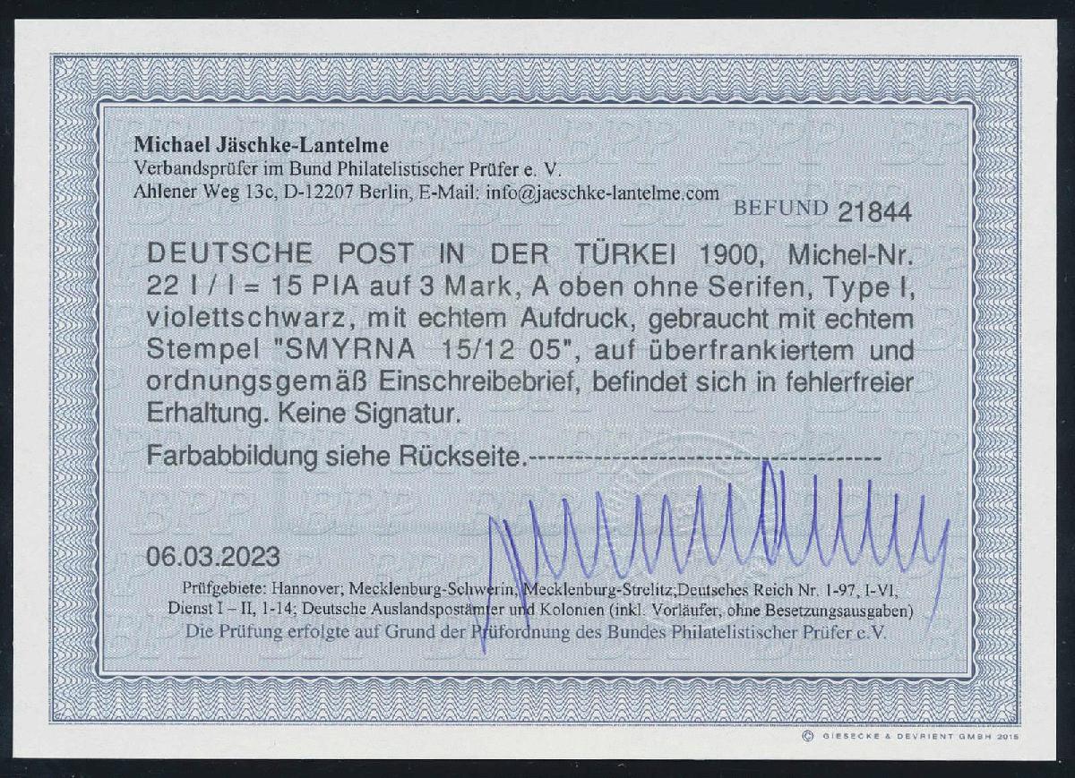 | Prüfgebiet: | Deutsche Auslandspostämter Türkei |