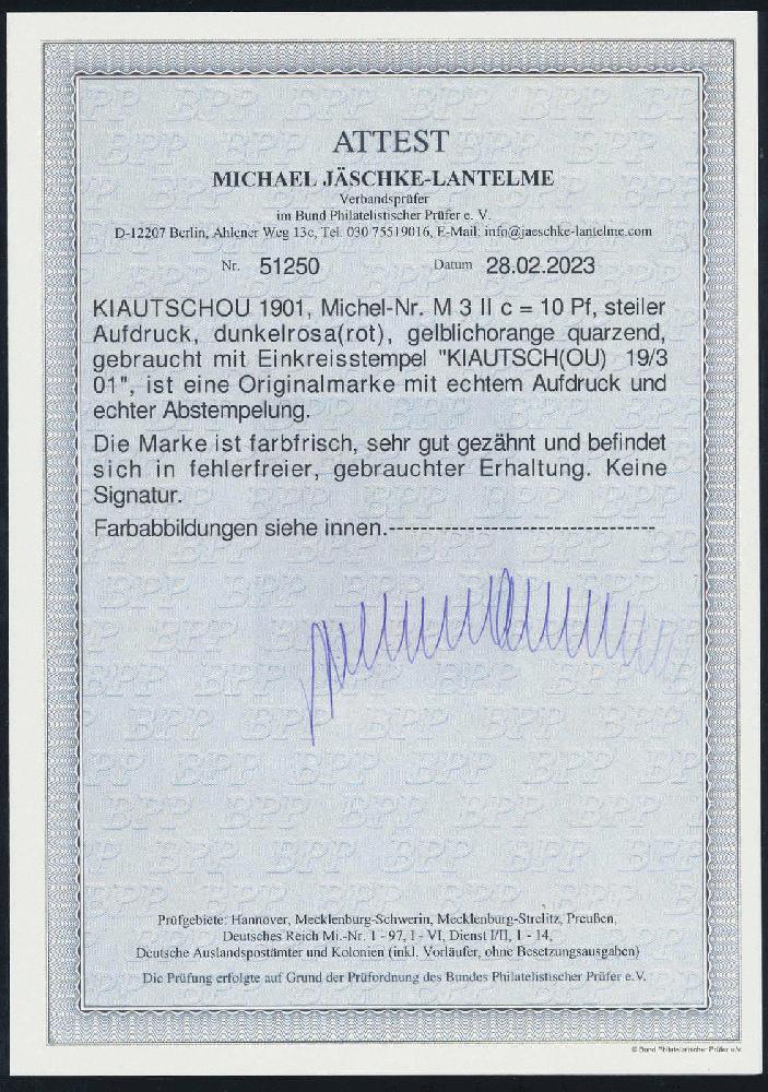 | Prüfer: | Jäschke-Lantelme, Michael (BPP (Bund Philatelistischer Prüfer)) |