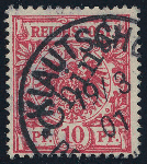 | Zusatzinformationen und Suchstichworte: | HBA 81. Auktion 11. - 13. Mai 2023 Los 1129 (D) Deutsche Kolonien Kiautschou Mitläufer 1901, Krone/Adler mit steilem Aufdruck, 10 Pfg., dunkelrosa(rot), gelblichorange quarzend, als Mitläufer sehr sauber gestempelt "KIAUTSCHOU DP 19 3 01", tadellose Kabinetterhaltung, gepr. Jäschke-Lantelme mit neuem Fotoattest, Mi./Dr. Steuer (x4) 920,-- Zuschlag 210,00 EUR |
