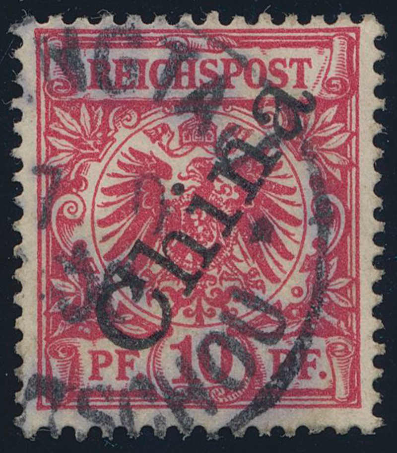 | Zusatzinformationen und Suchstichworte: | HBA 81. Auktion 11. - 13. Mai 2023 Los 1130 (D) Deutsche Kolonien Kiautschou Mitläufer 1900, Krone/Adler mit steilem Aufdruck, 10 Pfg., dunkelrosa(rot), als Mitläufer sauber gestempelt "TSINGTAU KIAUTSCHOU 7 10 00", tadellose Kabinetterhaltung, gepr. Jäschke-Lantelme mit neuem Fotobefund, Mi. 230,-- Zuschlag 60,00 EUR |