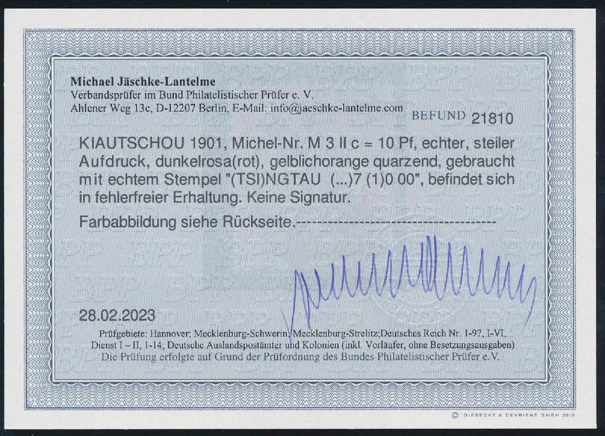 | Prüfer: | Jäschke-Lantelme, Michael (BPP (Bund Philatelistischer Prüfer)) |