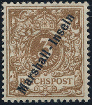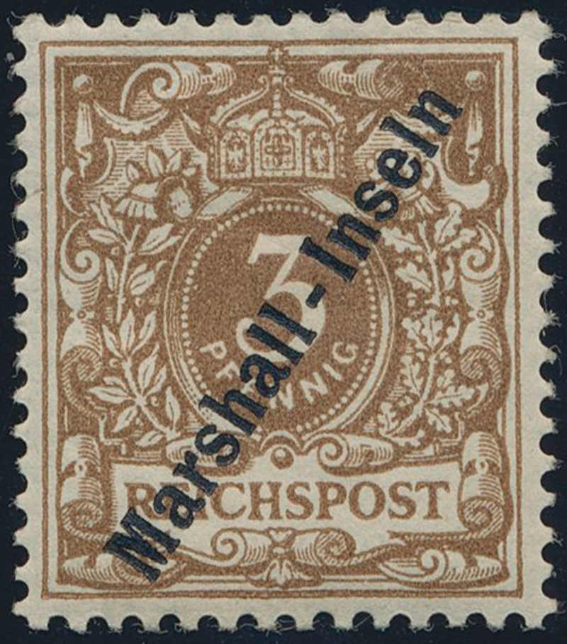 | Zusatzinformationen und Suchstichworte: | HBA 81. Auktion 11. - 13. Mai 2023 Los 1149 (D) Deutsche Kolonien Marshall Inseln 1899, Krone/Adler mit Aufdruck, 3 Pfg., lebhaftorangebraun, sauber ungebrauchtes Kabinettstück mit Falzresten, ohne Signaturen und gepr. Jäschke-Lantelme mit neuem Fotobefund, Mi. 350,-- Zuschlag 80,00 EUR |