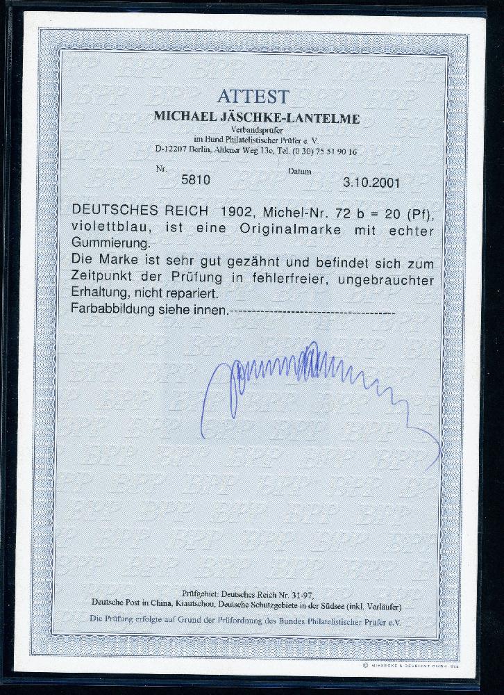 | Prüfer: | Jäschke-Lantelme, Michael (BPP (Bund Philatelistischer Prüfer)) |