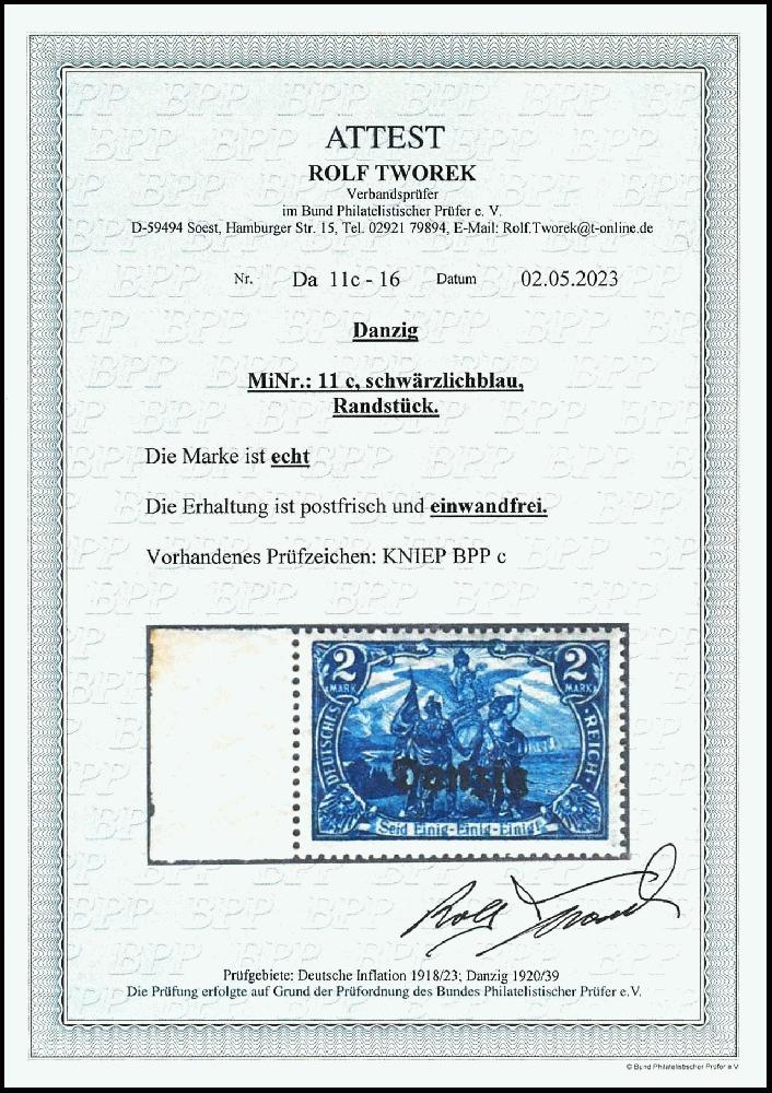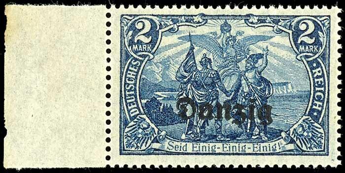| Zusatzinformationen und Suchstichworte: | Dr. Reinhard Fischer 193. Auktion 21. - 22. Juli 2023 Los 4041 Danzig 2 Mark Deutsches Reich mit Bdr.-Aufdruck "Danzig", schwärzlichblau, vom linken Bogenrand, tadellos postfrisch, gepr. Kniep BPP und Fotoattest Tworek BPP (2023): "echt und einwandfrei", Mi. 1.000.- Ausruf 250,00 EUR |